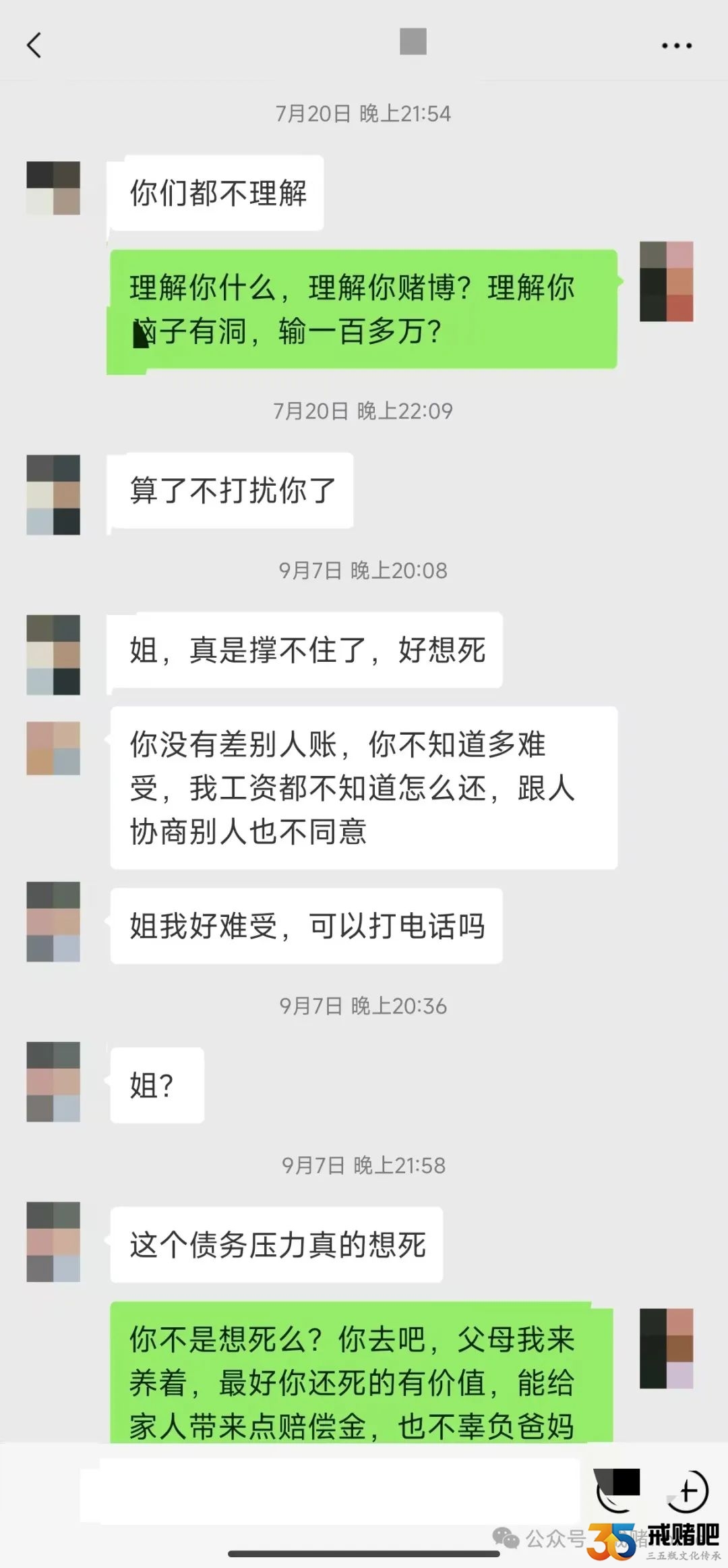 我再次提醒那些女赌徒,一定要自爱,以前我还在赌的时候,认识了另一个女赌徒,她老公对她很好,结果她为了还债跟不同的男人睡觉,说好听点那是被环境逼的,说难听点那就是个J,作为女性,你喜欢被人称呼为J吗?好听吗?你能骗的过别人,你能骗的过自己的良知吗?我不是评判,而是建议,有些事一旦做错,一辈子都难以回头。...