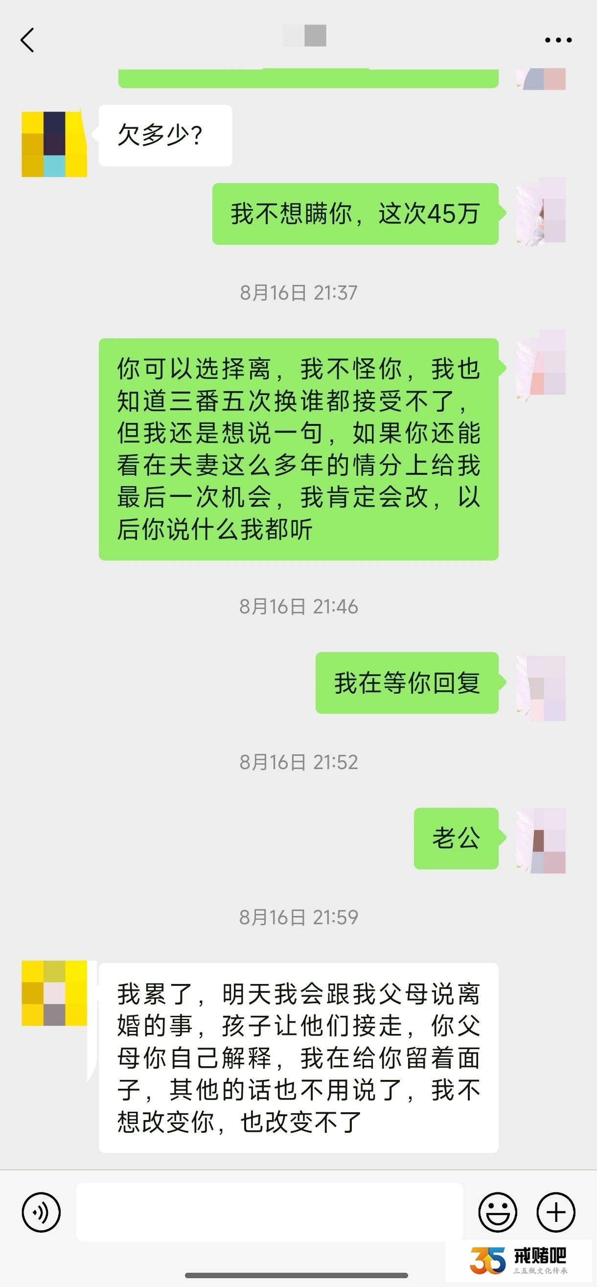 经此一事我彻底想通,再也不赌了,如果真的离婚了,或许这辈子我都找不到这么好的男人。网赌害人,网贷更是吸血恶魔,我希望自己的故事能够警惕更多人戒赌,我也会说到做到,绝对不会有下一次了。...